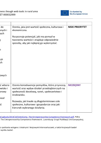 nazwa publikacji: Bacigalupo, M., Kampylis, P., Punie, Y., Van den Brande, G. (2016). EntreComp: The Entrepreneurship Competence Framework. Luxemburg: Urząd Publikacji Unii Europejskiej;