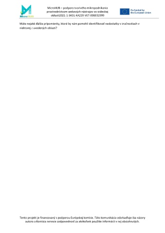 Máte nejaké ďalšie pripomienky, ktoré by nám pomohli identifikovať nedostatky v zručnostiach v